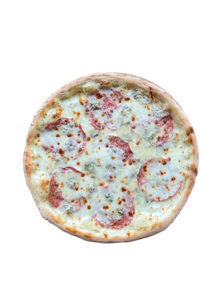 Вершковий соус, сир моцарела, салямі сиров’ялена, сир дорблю