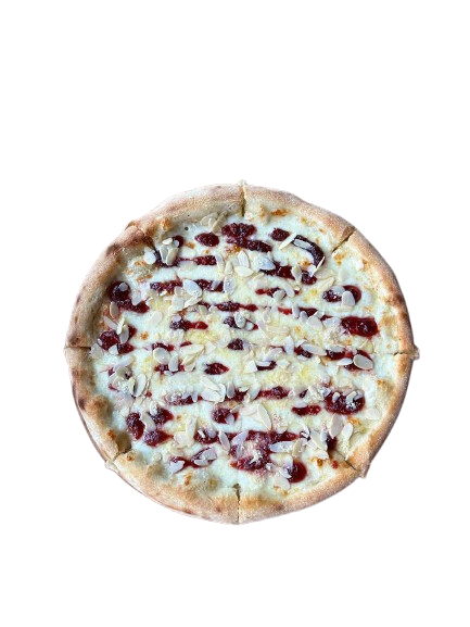 Вершковий соус, сир моцарела, сир камамбер, соус з журавлини, мигдалеві пластівці, грана падано